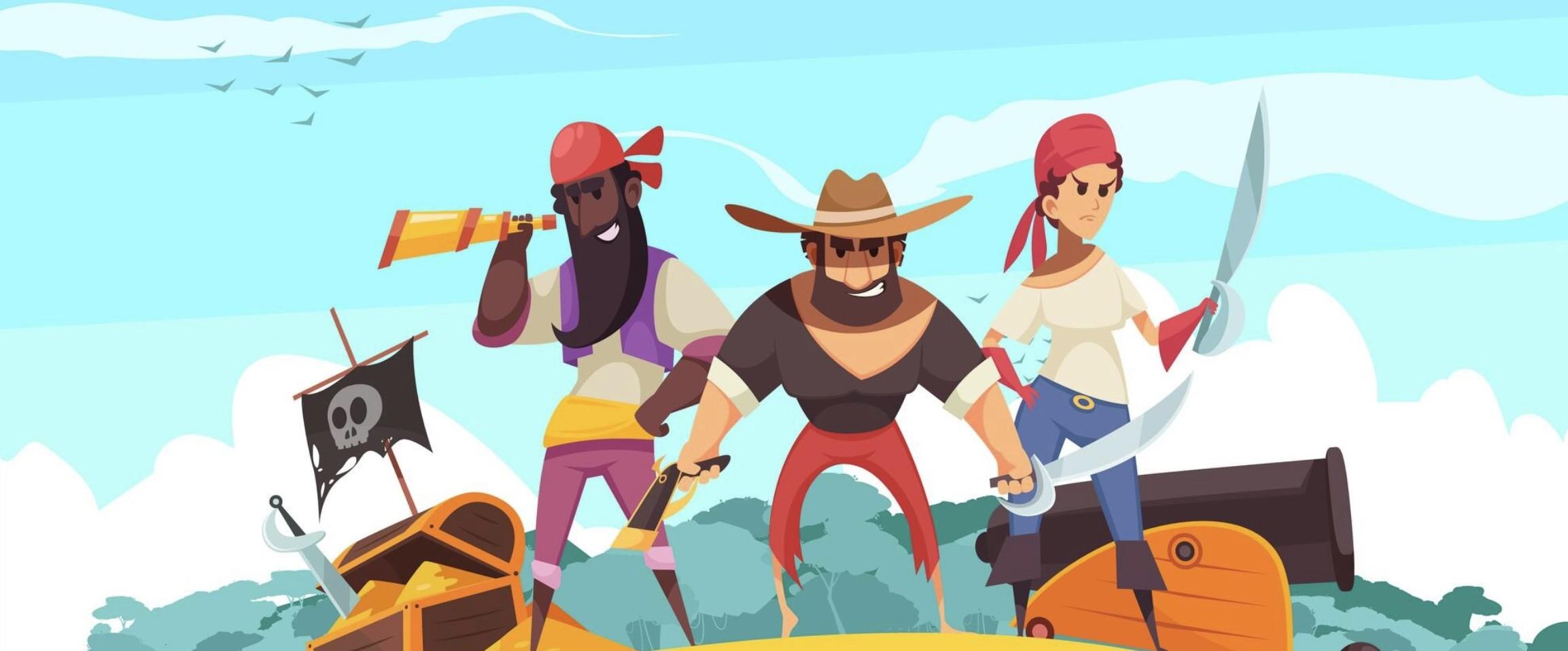 Faire 4 grands puzzles identiques (plan du trésor) en 4 morceaux. Chaque équipe (les pirates, les corsaires, les marchands, les rackams le rouge) qui est différenciée par des déguisements ou du maquillage, possède 4 morceaux identiques des puzzles dissimulés dans leur île respective. Les équipes doivent reconstituer leur puzzle en récupérant les morceaux manquant (3) sur les autres îles. En même temps, une prise de foulards se déroule : A attrape B, B attrape C, C attrape D et D attrape A. Les f