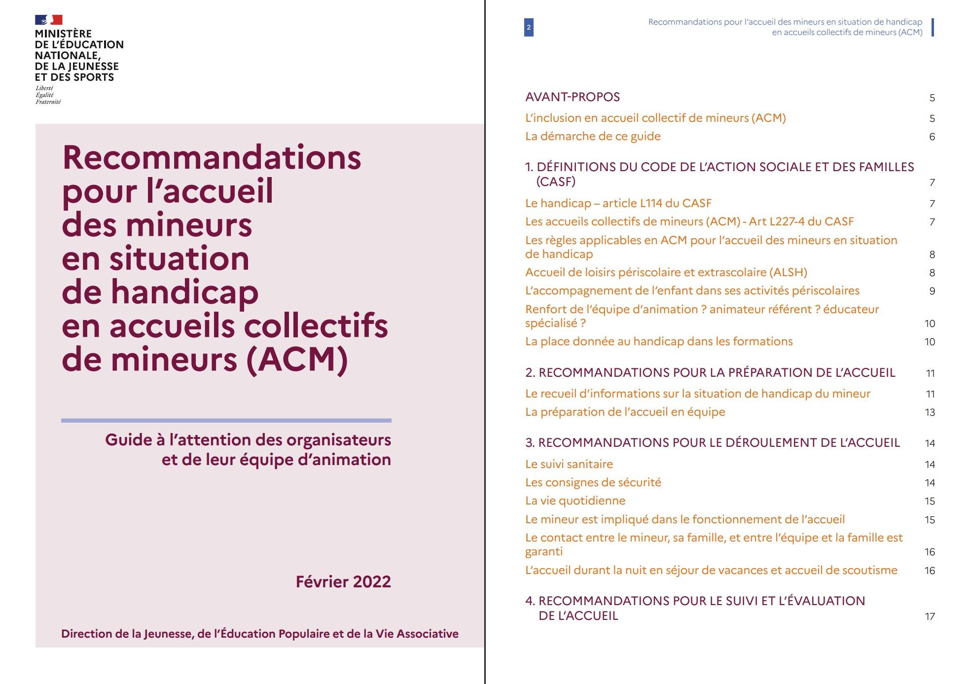 – l’accueil du mineur dans une structure ouverte à tous, sans distinction de handicap, en accueil collectif de mineurs (ACM). C’est cette modalité inclusive qui est présentée dans ce guide.
