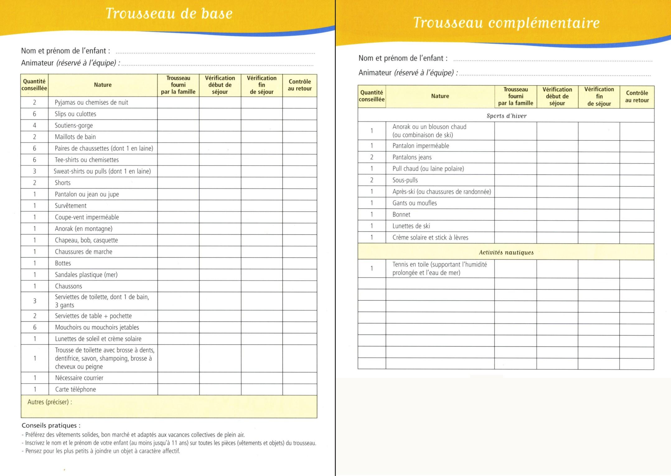 Fiche pratique pour faire l'inventaire des affaires des enfants.