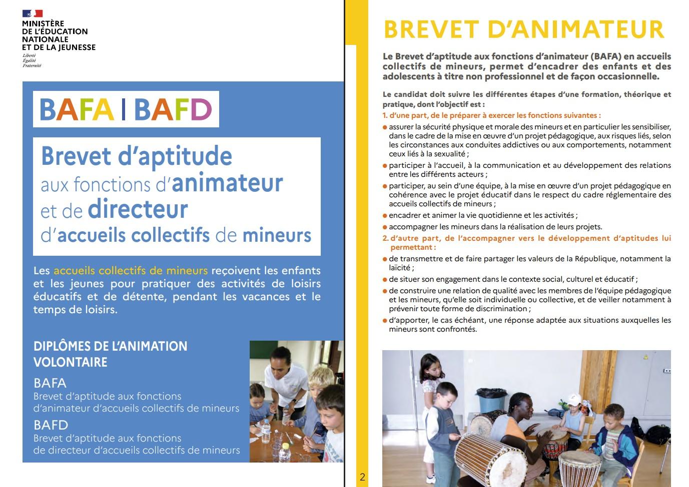 Brochure ministérielle sur les formations BAFA et BAFD.