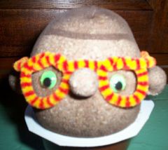 Mettre des graines de gazon au fond d'un collant, remplir avec de la sciure / sable / terre jusqu'à obtenir une boule de la taille d'une main. Faire un noeud au collant et couper le reste. Faire 3 petites boules (en tournant le collant rempli de sciure) pour former les oreilles et le nez. Décorez à votre guise et n'oubliez pas d'arroser !